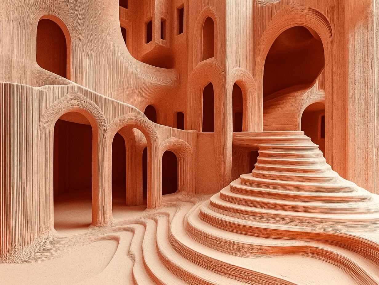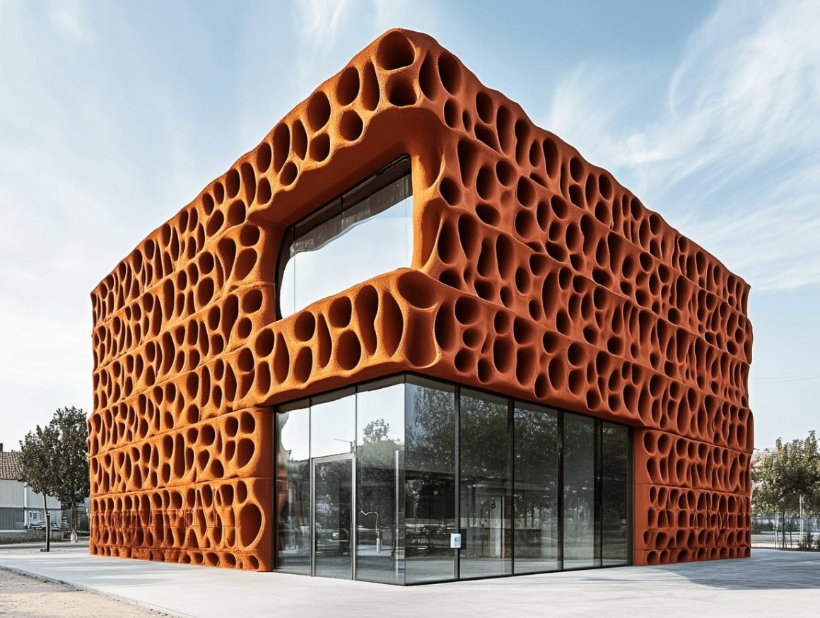 مشاريع في إيطاليا (Mario Cucinella Architects & WASP) حيث يتم استخدام الطين المحلي بتقنيات طباعة ثلاثية الأبعاد لإنشاء مساكن مستدامة ومنخفضة التكلفة. الخوارزميات هنا تتحكم في شكل الجدران ودرجة السماكة والانحناءات لتحقيق كفاءة هيكلية وحرارية، بينما المادة الأساسية ما زالت الطين المحلي.
