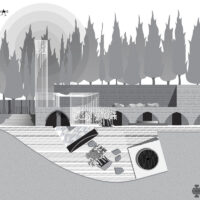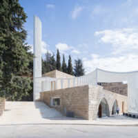 وبدلاً من استخدام الصورة التقليدية لعمارة المساجد التي تتمحور حول مكعب وقبة ومئذنة، يقدم التصميم قراءة أخف للعين للطابع المسجدي، ممّا يمنحه حضور هيكلي سريع الزوال. كما وتدعم الأسطح المستوية المُقعّرة والمُحدّبة للمسجد الجديد الساحة الخارجية والشارع بواسطة الشكل الهندسي المنفتح، وتربطه بالمساحة الدينية الداخلية والتي عادة ما كانت مغلقة بإحكام. كما نعلم الآن، تم تهميش حدود هذين المكانين (المساحة الدينية الداخلية والمساحة العامة للشارع في الخارج) في انتفاضات “الربيع العربي” حيث تقاطعت المساحة العامة للمدينة مع المساحة العامة للمسجد.