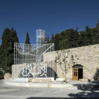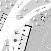 كما و تظلل شجرة التين الساحة الجديدة، مُشّكلًة الصورة النهائية مع شجرة الزيتون الموجودة على الجانب الاخر من الشارع، في إشارة واضحة لآية ” التين و الزيتون” ( سورة التين) في القرأن الكريم، ومشيرة أيضًا لأهميةِ كِلتَا الشجرتين في التقاليد المسيحية. عند عتبة مدخل قاعة المسجد، المخصصة للنساء والرجال في ذات المكان، يوجد بابان خشبيان مفصولان وغائران بواجهات زجاجية محفورة على شكل مربعات.