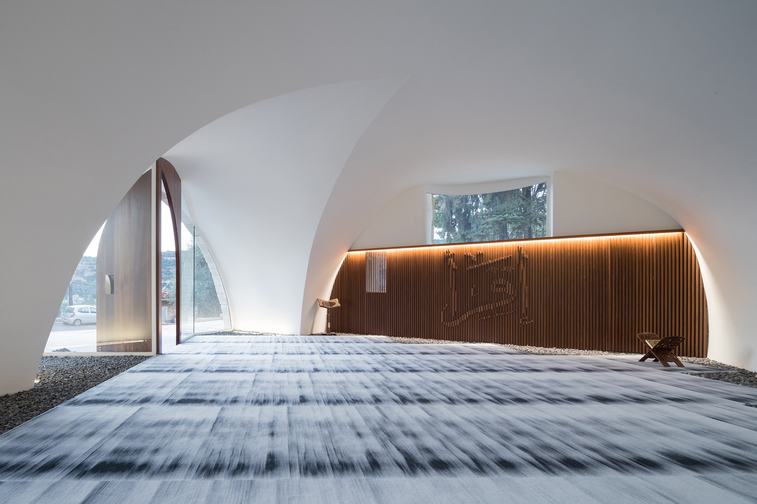 استدعى الهيكل القائم الحد الأدنى من التدخل، وتضمن ذلك ” تبييض” الأسطح المقعرة للأقبية الداخلية، باستخدام خليط خاص من الطلاء المصنوع من الحجر الجيري والذي تم جلبه من حلب في سوريا، فضلاً عن استحداث فتحة سقفية جديدة تقطع المساحة المقببة و تحدد اتجاه القِبلة نحو مكة المكرمة، كما وتلقي بالضوء باتجاه المحراب. ومن خلال هذه الفتحة السقفية ، يمكن للمرء أن يرى المئذنة في حلقة بصرية مذهلة من الخارج عائدة إلى المساحة الداخلية، كما وتربط بصريًا الإنفصال في المساجد التقليدية بين الصوت و الرؤية.