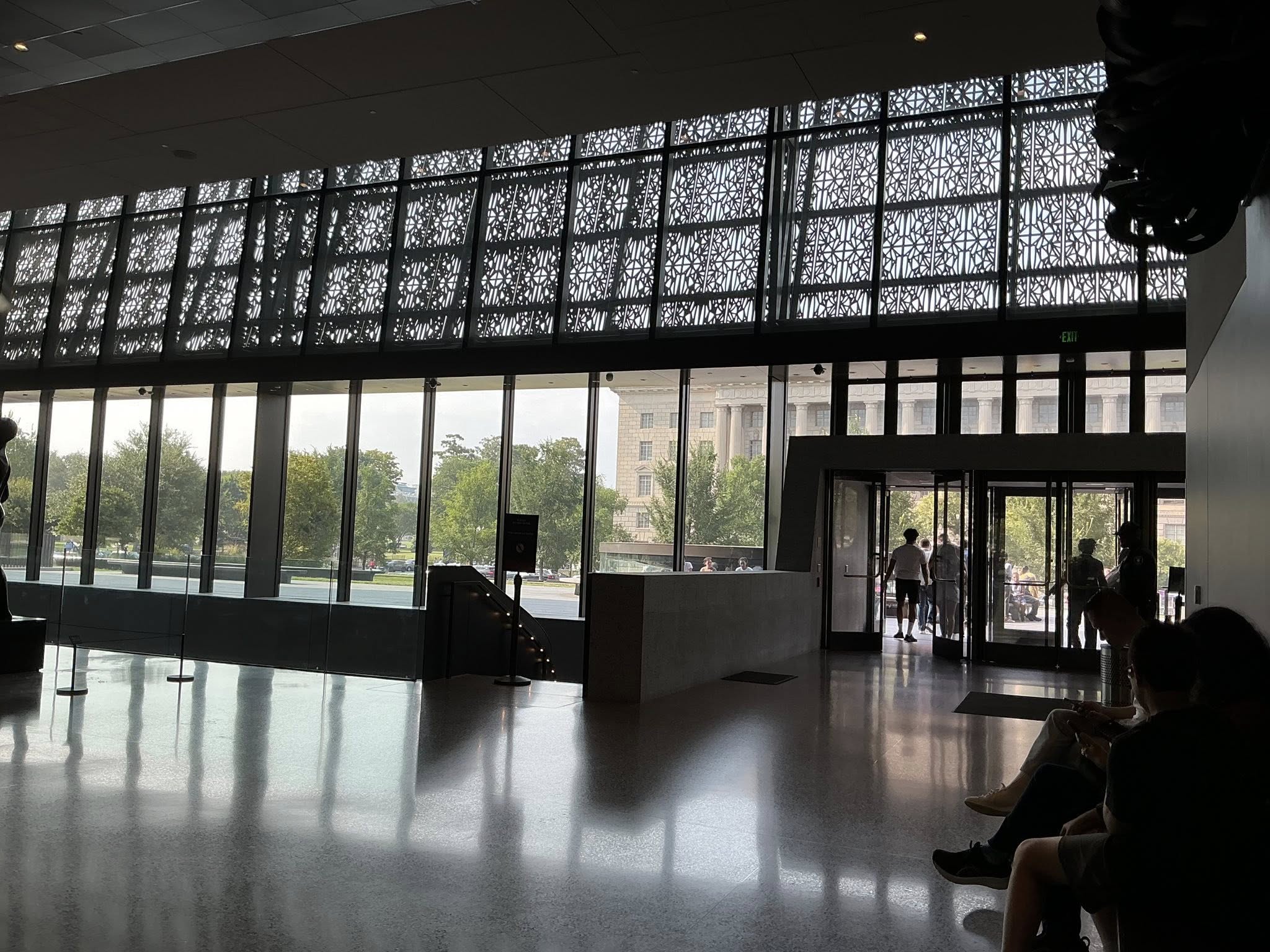 تفتح الشبكة المغلفة للمبنى، أيضا أمام ضوء النهار الخارجي، والذي يمكن تعديله وفقا للموسم. يعمل الضوء المنعكس من الشبكة ذات اللون البرونزي كمنارة للتذكرة بقسوة العبودية ونور الحرية التي جعلت الأفارقة الأمريكيين مبدعين ومساهمين في كل مقومات الثقافة الأمريكية. كما أن الانفتاح على الضوء رمزي الدلالة لمتحف يسعى إلى تحفيز الحوار المفتوح حول العرق والمساعدة في تعزيز المصالحة والاحتواء.